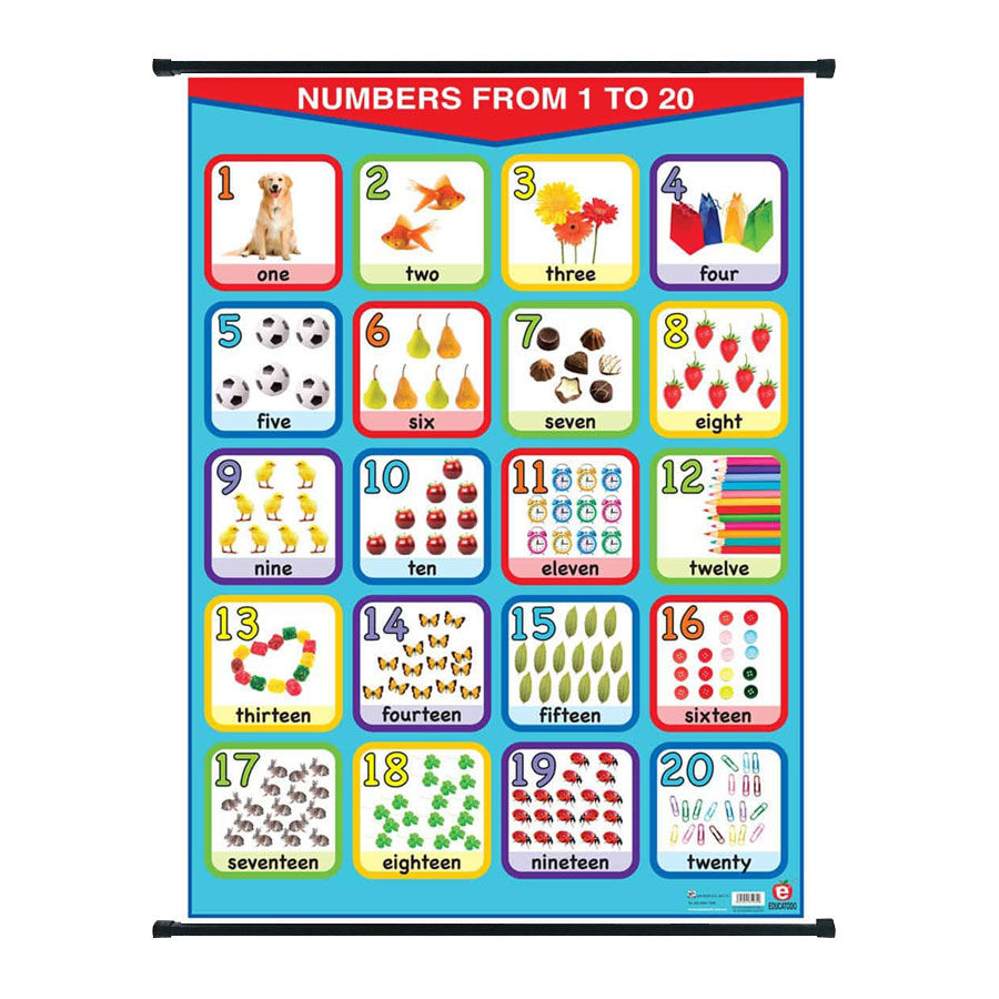 Póster números del 1 al 20 español/inglés (con bastón)